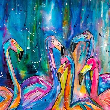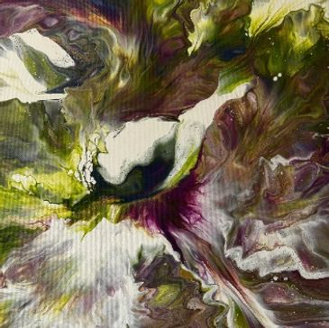 I combine water-based paints & mediums (model paste, string gel, sand gel, beads gel, pumice, & liquid alcohol). I use paper, canvas, bristol board. I apply paint by pour, splatter, brush, & linework. I use watercolor techniques on canvas with liquid acrylics to show a fluid movement on the canvas.