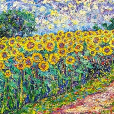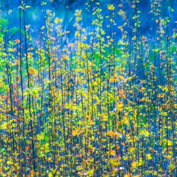 I use brightly colored oils to incite emotion and often mix the paint directly on the canvas. Paint is applied with a palette knife, working within the composition to create the movement of nature.