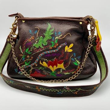From whole cowhides I create custom belts while you wait. Customers watch as I finish their belt on my portable butcher block. I value a zero waste philosophy and utilize every square inch of my hides and weaving leather tapestries assists me in this process. I also make leather & brass accessories.