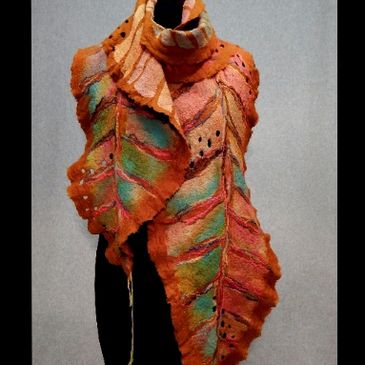 I start by hand manipulating fibers, threads, yarn, strings and fabrics through multiple layers of technique which may include dyeing, intertwining, layering, commingling, knitting, or hand-weaving. I finish each piece one at a time by hand in water which transforms them as if by magic.
