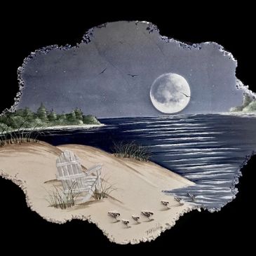 Acrylic paint on natural birchbark. The texture and anatomy of bark dictates subject matter resulting in dynamic 3D art. A unique & original art form.