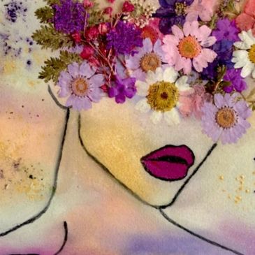 Katie’s oil paintings are created with natural, non-toxic, and environmentally friendly earth pigments, hand-mixed with oil in the tradition of the Old Masters of the Renaissance. She incorporates real pressed flowers into her work, using them as symbols of growth, resilience, and transformation.