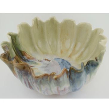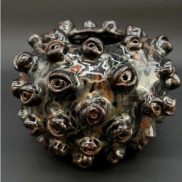 I create 2 styles of clay pieces. First, I use red & white stoneware, using the coiling & slabs method. Glazed with both commercial & hand-mixed blends, pieces are fired to cone 6. My other style uses air-dry clay to craft fruit & veggie faces, hand-painted and sealed with a clear coat and lashes.