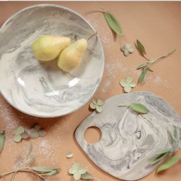 I am using a variety of domestic and imported stoneware and porcelain clays. I work on the pottery wheel and work with slabs of clay to create my functional pottery.